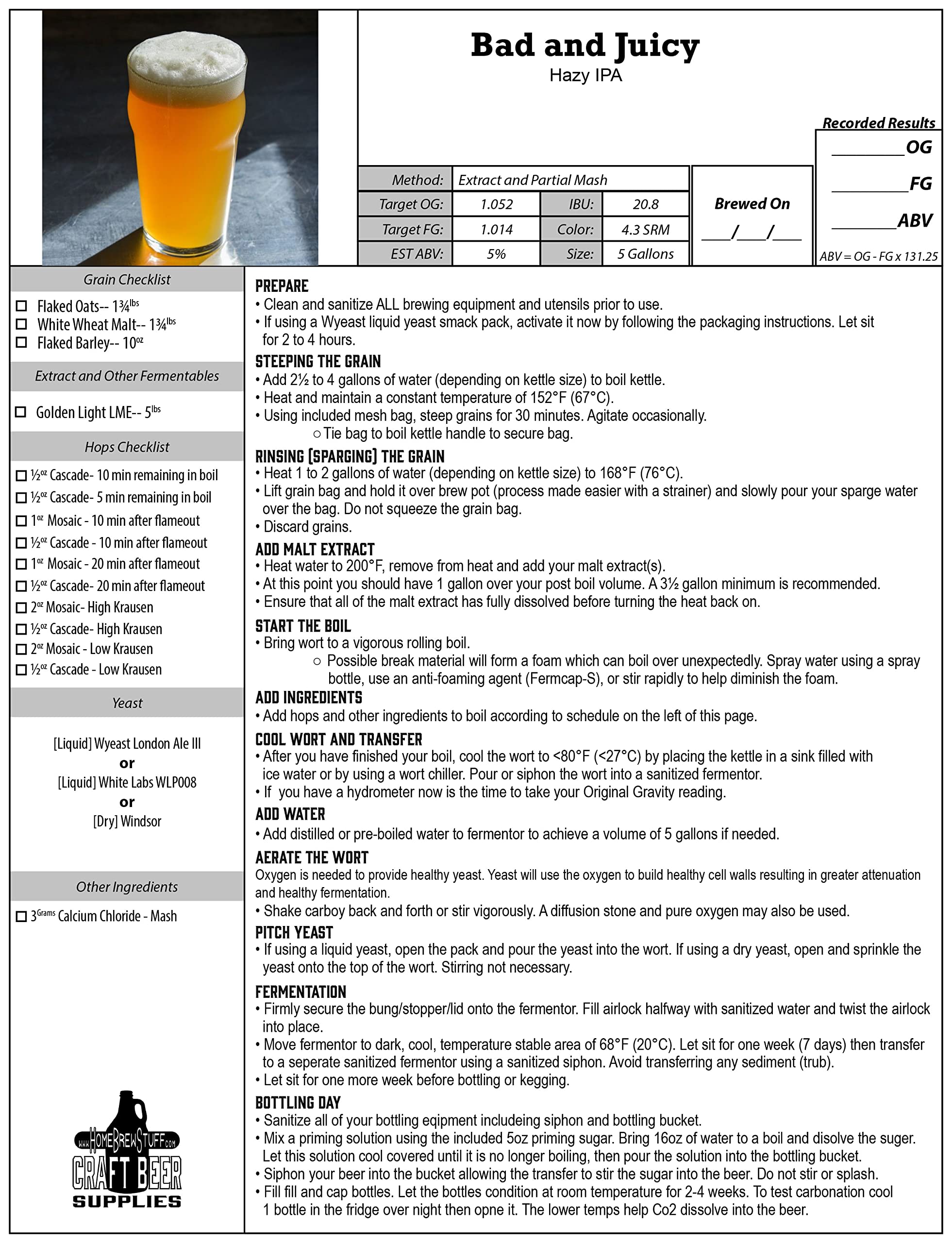 Juice Bomb Hazy Ipa All Grain Recipe Pack Cheeky Peak Brewery